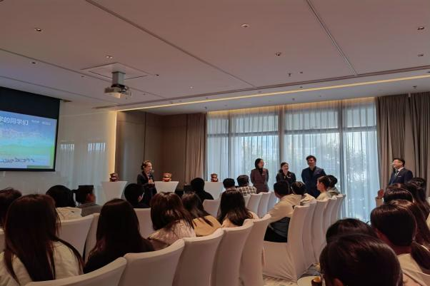 酒店为同学们准备了精美的茶点和破冰游戏,从大家五湖四海的家乡方言接力中,打开了关于酒店经营的“话匣子”。来自酒店各部门的负责人变身为课堂教师,以亲身管理实践为同学们打开酒店管理的讲堂。