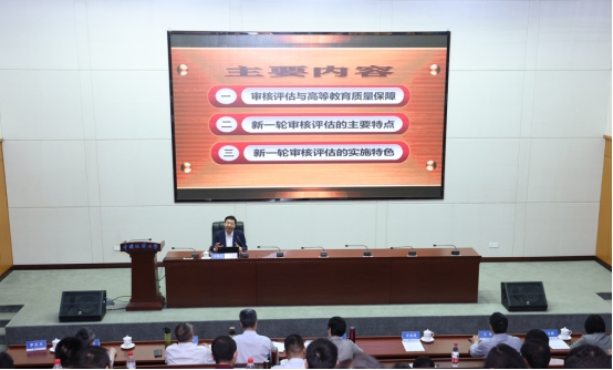2024年5月11日,学院全体教师参加了学校举行的本科教育教学审核评估专题辅导报告会,学院党委书记杨昌锐、党委副书记李纪亮、副院长肖建忠在南望山校区东区教学综合楼A0116主会场参会,其他教职工在未来城校区经管学院二楼报告厅分会场参会。通过辅导报告,全体教师进一步厘清了审核评估的主要逻辑,深化了对审核评估重要意义的认识。