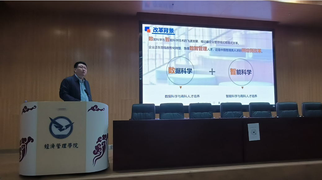 (通讯员 朱镇)11月20日上午,学院高端论坛第390期举行。应管理科学与工程系系主任朱镇教授邀请,上海外国语大学国际工商管理学院马宝君教授为我院教师做了“数智化变革背景下商科人才培养与学科建设改革实践”,详细介绍了该院过去10年中围绕“数据科学”和“智能科学”,加强管理科学与工程和工商管理两个学科发展,在教学、科研以及学科体系上所做的探索。