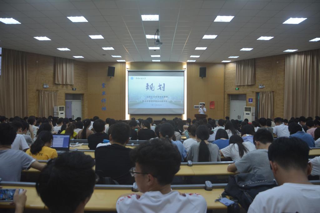 2018年7月7日,麻豆视频 生涯规划先修课暨2016级本科生年级大会在教三楼109召开,经管学院党委副书记沈波老师、16级辅导员田昆老师、兼职辅导员陈习良老师出席大会,16级全体学生参会。