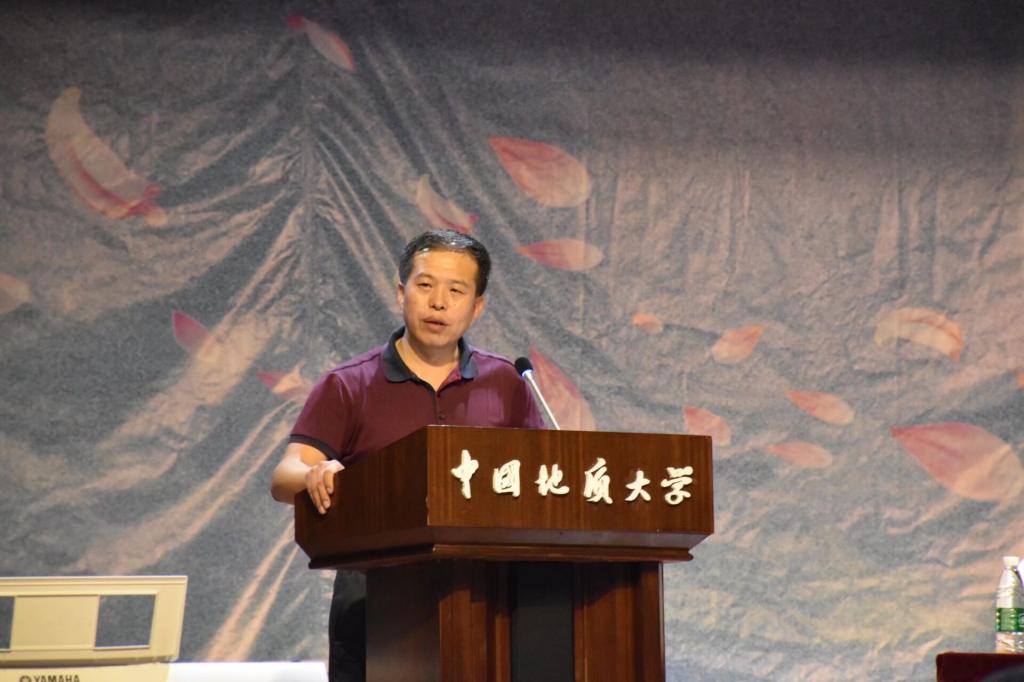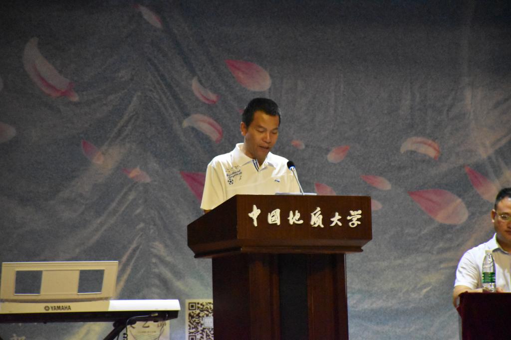 国际经济与贸易系主任白永亮代表教师发言,他从平台、规划、坚持三个方面展开,为新生传授自己的宝贵经验。
