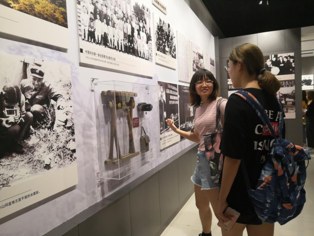 在参观过程中,实习团队还组织了党员同志进行“学习地质前辈,重温入党初心”的主题党建活动,党员同志们在观看展板时主动向同学们讲述感悟体会,宣扬地质前辈高尚的精神品格。