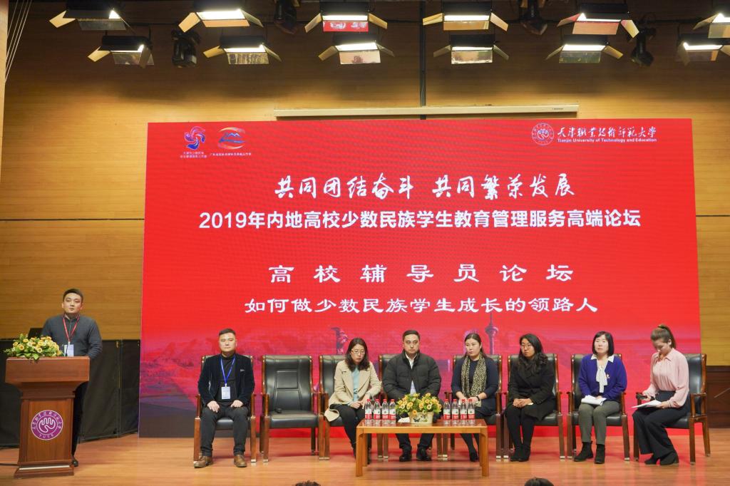 近日,2019年内地高校少数民族学生教育管理服务高端论坛在天津举行,本次论坛主题为“共同团结奋斗 共同繁荣发展”,来自全国109所高校的400余名专家学者、统战部部长、学工部部长、少数民族专职辅导员参加论坛。天津市委常委、统战部部长冀国强,教育部民族教育发展中心副主任胡炜,广东省委教育工委副书记、省教育厅党组副书记李大胜等出席开幕式并讲话。我院辅导员努尔夏提·居勒提受邀参加论坛并发言交流。