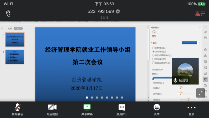 为落实各级各项就业政策,推进《麻豆视频 全员促进就业工作实施方案》的实施,促进本届毕业生“顺利毕业、尽快就业”,学院就业工作领导小组于2020年3月17日14:00召开扩大会议,这也是领导小组的第二次线上会议。院党委书记杨昌锐、院长杨树旺、院党委副书记沈波、副院长肖建忠、教务科科长石磊、学院各系主任、2016级本科生班级班主任出席会议,会议由辅导员田昆主持。