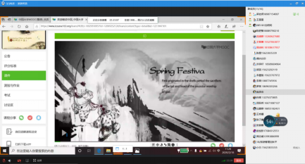 由于疫情的影响,学生无法获得纸质教材,视频与字幕的MOOC资源对目前阶段的教学而言尤为珍贵。为给学生呈现更好的课堂效果,任课老师运用多种不同的教学方法对其加以全方位的有效利用。例如对上图“中国春节”一段8分钟左右的慕课视频资源,课堂遵循由易到难的原则,设计了听音速记关键词,根据视频资料总结中国春节最重要的传统习俗,春节传统食品趣接龙,根据MOOC资源“你问我答话春节”、“我家乡的春节”等进行不同难度不同形式的课堂教学。课后,老师在学习通系统中设计了随堂测验,及时检查学生对本节内容的掌握情况。
