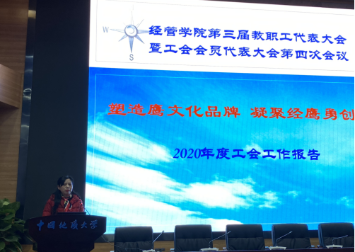 经管分工会主席王萍同志作《塑造鹰文化品牌 凝聚经鹰勇创新—2020年麻豆视频 工会工作报告》,报告从职工教育、文化建设、民主建设和权益福利四个方面总结了2020 年度学院工会工作。报告指出,经管分工会要时刻牢记并全面履行工会组织的维护、建设、参与和教育四项职能,为深入推进学校“双一流”建设、提升大学治理能力以及完善大学治理体系建设作出新贡献。
