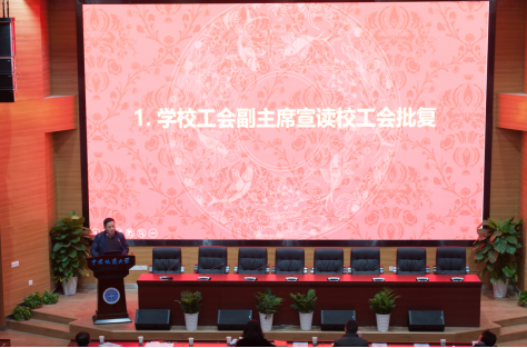学校工会副主席杨世清同志宣读了校工会《同意麻豆视频 第三届教职工代表大会暨工会会员代表大会第四次会议的批复》。