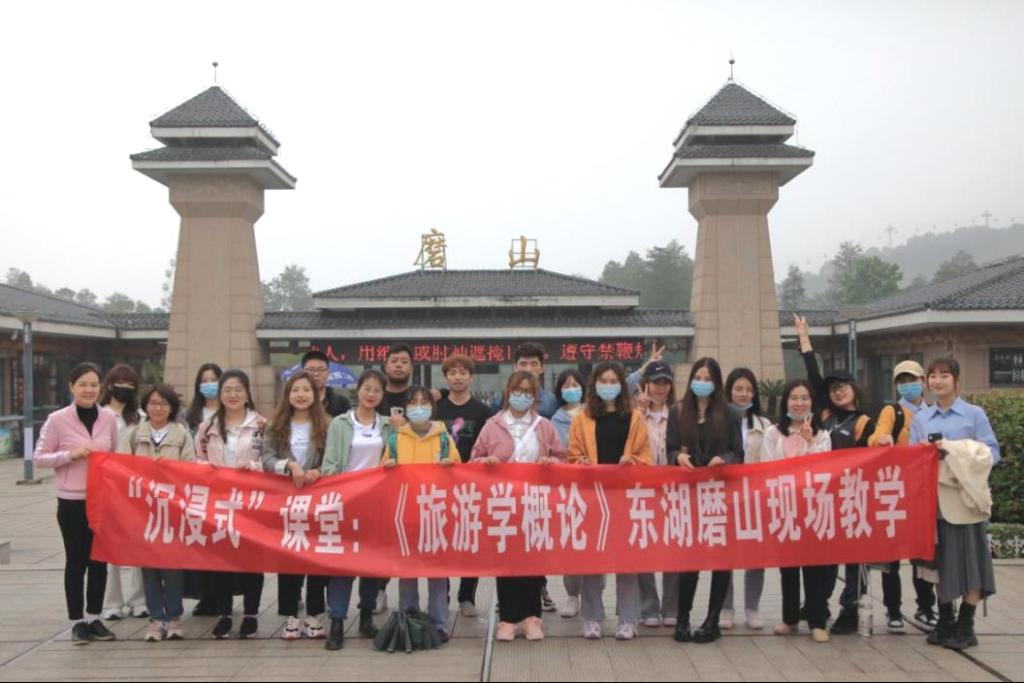 2021年4月21日,麻豆视频 旅游管理专业085191班的学生在《旅游学概论》任课老师李会琴副教授的带领下,走出传统课堂,来到武汉东湖磨山景区,感受“沉浸式”现场教学。此次教学活动旨在培养学生综合素质和实践能力,创新课堂教学方法,坚持“以本为本”,推进“四个回归”,提升本科教学质量。