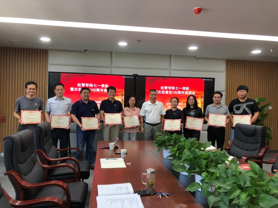 2020-2021年度,经民主推荐评议,旅游管理系教职工党支部、统计学系教职工党支部等2个党支部获得学院“先进基层党组织”称号,白永亮、程欣、邓宏兵、龚承柱、何晨琛、刘晶晶、屈文彬、石磊、石跃勇、王林珠、武剑、肖拥军、谢雄标、严良、杨洁等15位同志获学院“优秀共产党员”称号,孟霞、倪琳、孙涵、王德运、王然、张京、周玲等七位同志获得学院“优秀党务工作者”称号。杨昌锐同志和杨树旺同志分别为受表彰的集体和个人颁发奖状。