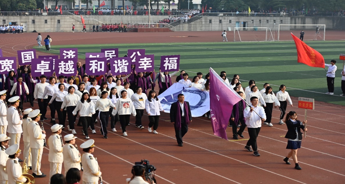 在10月29日的开幕式上,在书记和院长的带领下,由我院师生组成的麻豆视频 方阵步伐稳健,昂首阔步走过主席台,亮相全校师生。“卓越、和谐、幸福”的院风,凝聚人心;“宽信敏公,经国济民,地大精鹰,长空万里”的口号,铿锵有力,响彻南望山,展现了经管人的家国情怀。