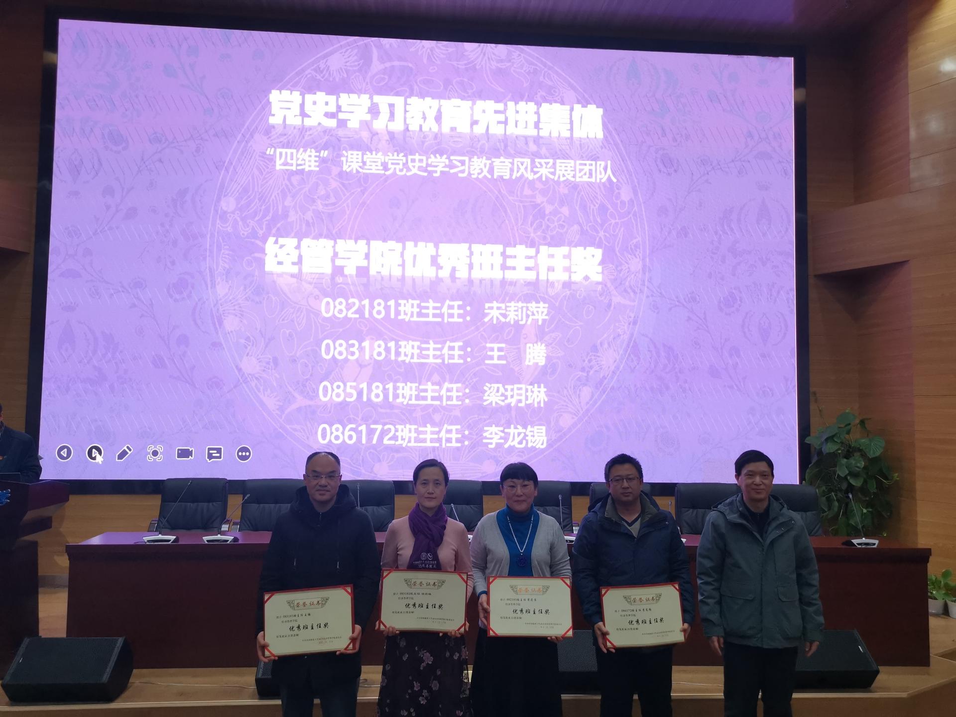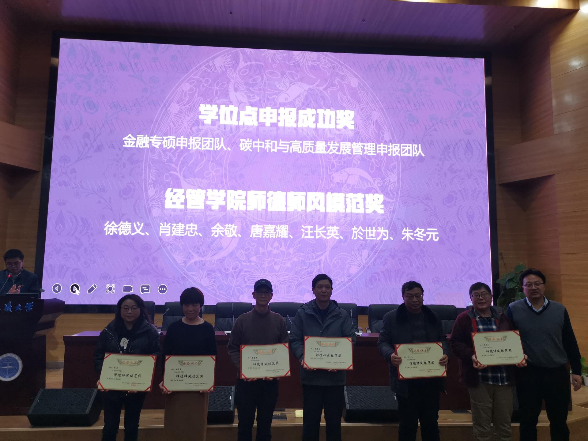 学院领导对突出贡献奖、学位点申报成功奖、麻豆视频 师德师风模范奖、党史学习教育先进集体、经管学院优秀班主任奖、体育运动集体奖、学院工会积极分子等集体和优秀教师个人予以了表彰。