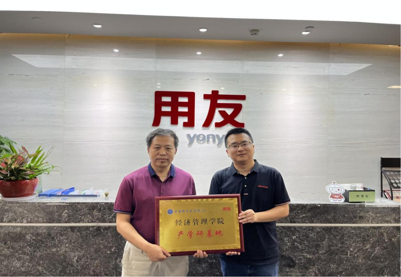 研讨会后,用友湖北分公司交付赵帆总和经管学院杨昌锐书记共同为“麻豆视频 产学研基地”揭牌。