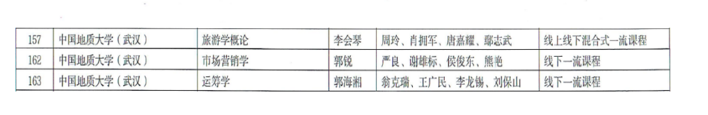 (通讯员 石磊)近日,湖北省教育厅发布《省教育厅关于公布2022年度省级一流本科课程认定结果的通知》(鄂教高函〔2022〕16号),我院《市场营销学》、《运筹学》课程被认定为省级线下一流课程,《旅游学概论》课程被认定为省级线上线下混合式一流课程。