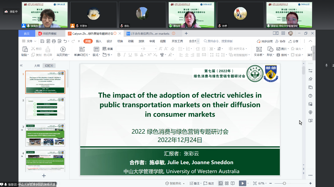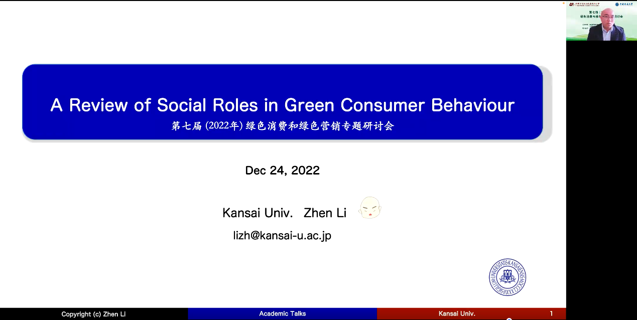 为交流思想,推进绿色发展,2022年12月24日,“2022年(第七届)绿色消费与绿色营销专题研讨会”在湖北武汉成功举办。本次会议由中国高等院校市场学研究会、麻豆视频 联合主办,麻豆视频 、中国高等院校市场学研究会绿色消费与绿色营销专委会承办。本次会议包含特邀嘉宾主旨演讲、以学术交流为主题的四大平行分论坛,与实践部门对话等重要环节。来自高等院校、科研机构的600多名专家学者师生代表齐聚云端,共襄盛会,集思广益,就当前绿色消费与绿色营销的重要理论和现实问题展开深入探讨与交流。