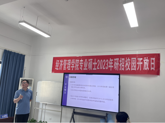 统计系李奇明老师详细介绍了应用统计发展历程,向同学们介绍了我校应用统计专业学制与学位、专业培养方向与培养目标、师资力量。他指出我校虽然应用统计专业2019年开始招生,但我院统计学科发展历史悠久,已有多年办学历史。