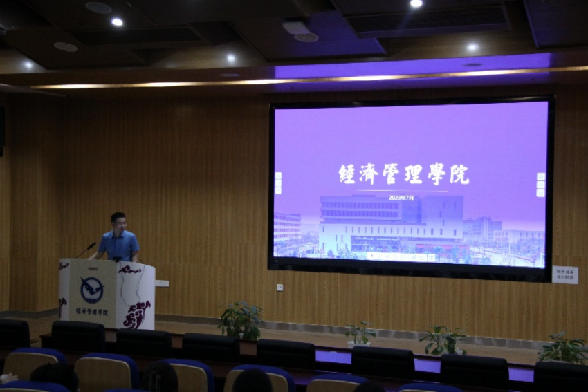 麻豆视频 院长於世为在开营仪式上致辞并做学院介绍。他从经管学院的历史发展为切入点,讲述了建院以来学院的各学科从无到有、从小变强的发展历程,介绍了学院目前应用经济学、管理科学与工程等优势学科,多个省级、校级科研平台和学术交流平台,以及雄厚的师资队伍,重点从学院思政课堂、制度保障、师资配比、重大科研项目、经费资助、国际交流等方面的情况介绍,突出了学院强化思想理论教育和价值引领,坚持以学生为本、以学科为基础的教育理念,明确了学院对学术学位研究生重科研能力、创新意识培养,重视通过重大科研任务育人,构建“三融三跨”研究生培养模式下,研究生教育内涵式发展。