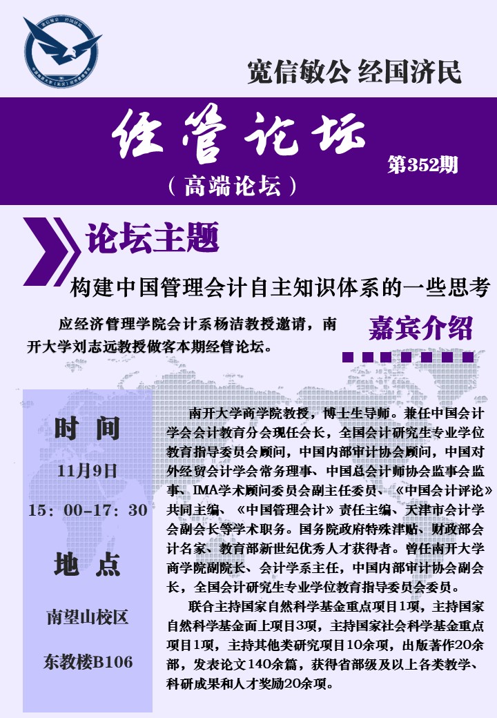 经管论坛(第352期)构建中国管理会计自主知识体系的一些思考