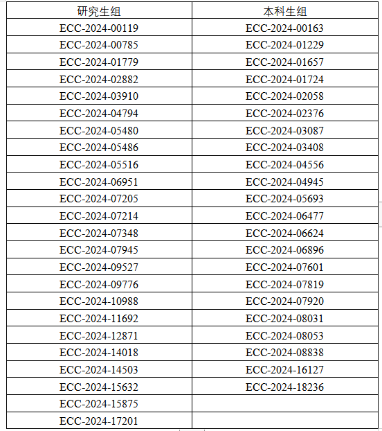 根据作品数量,本次比赛分为2组:研究生组(24份作品),本科生组(22份作品)。分组作品编号信息见附件。
