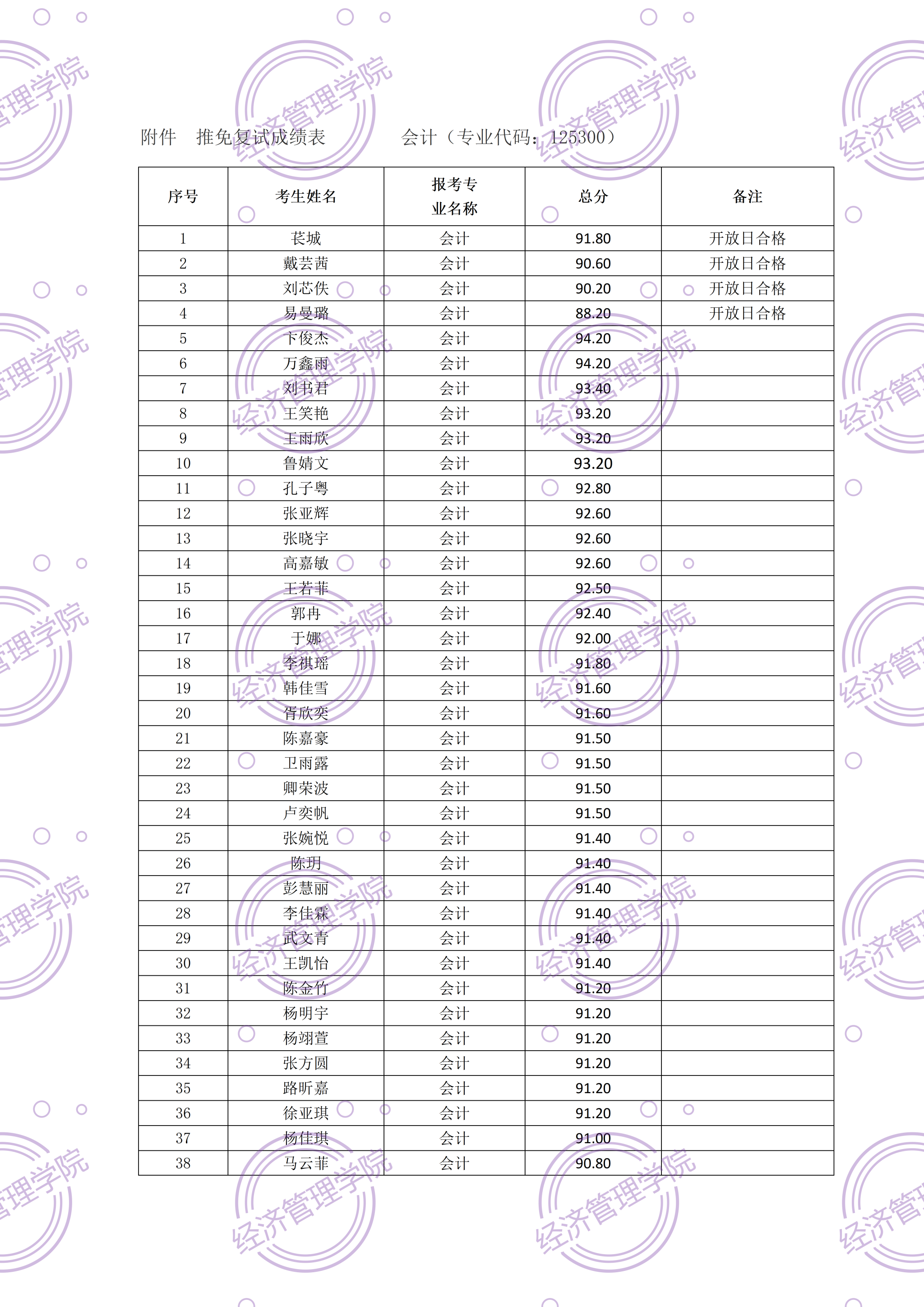 按学校相关文件规定,现对我院2025年接收会计专业硕士推免复试成绩予以公示(详见附件)。