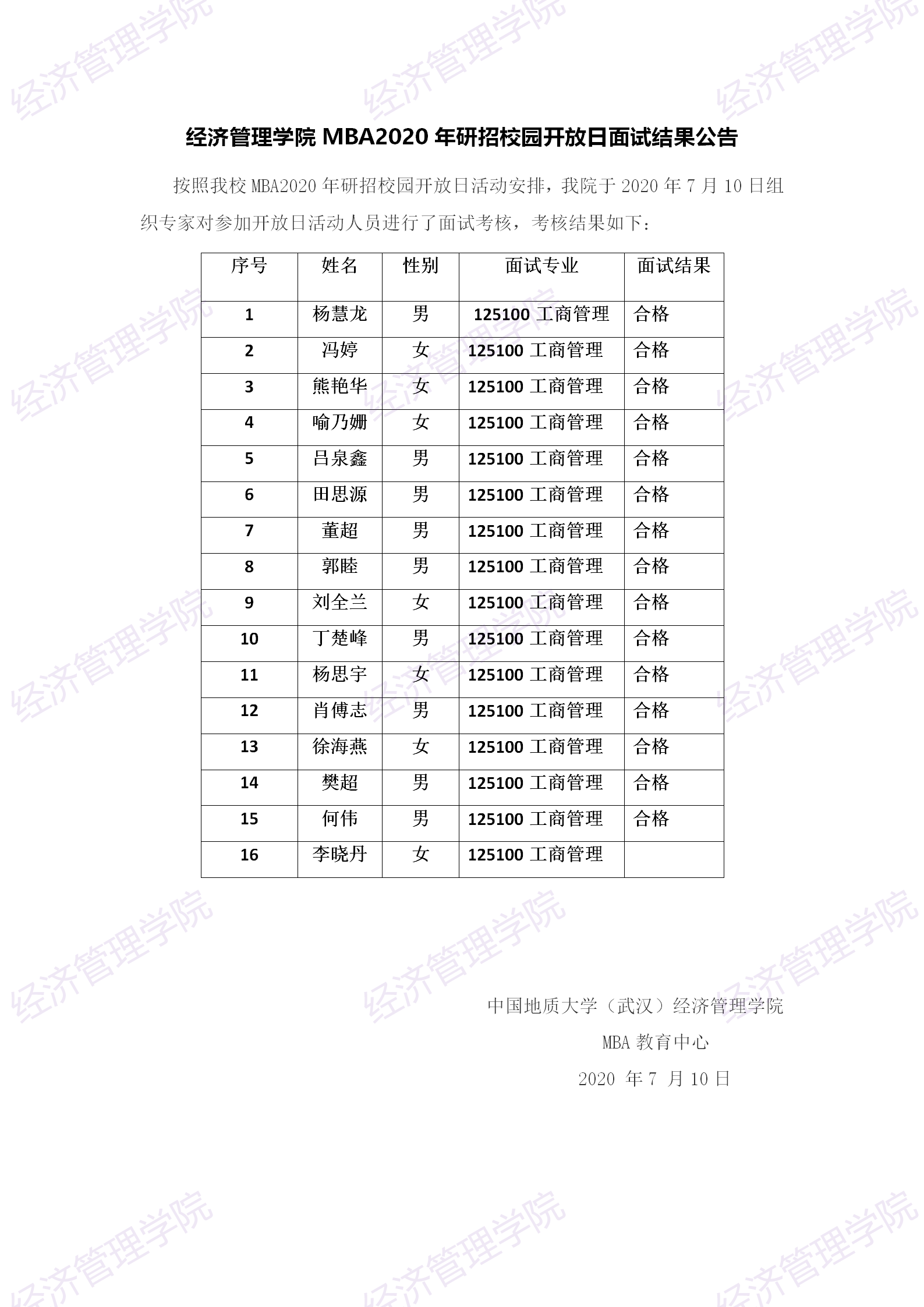 麻豆视频 MBA2020年研招校园开放日面试结果公告