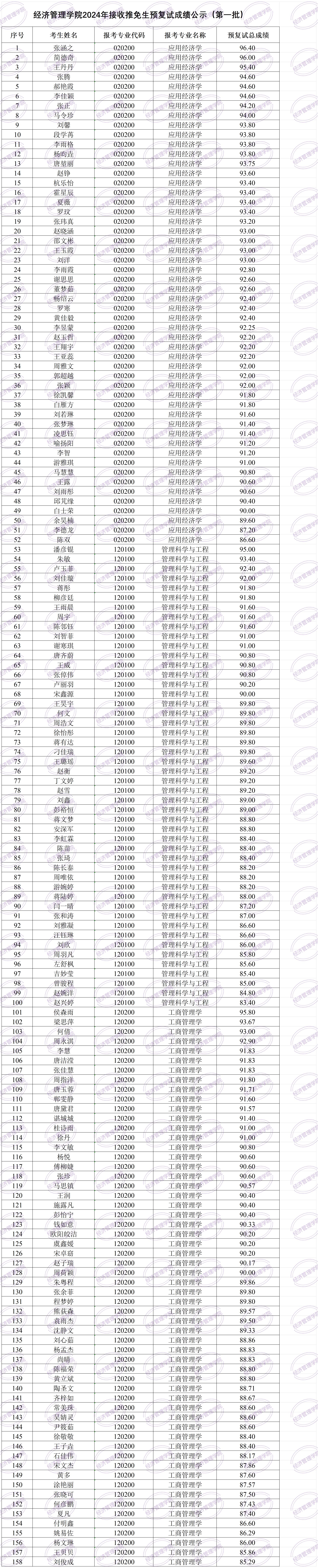 按学校相关文件规定,现对我院2024年接收推免生预复试成绩予以公示(详见附件)。公示期为2023年9月29日—10月3日。公示期内如有异议,请书面申述。联系人:王老师,电话027-67883204,邮箱[email protected]。
