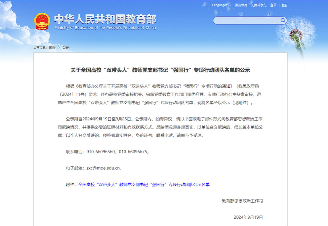 日前,教育部办公厅公布《关于全国高校“双带头人”教师党支部书记“强国行”专项行动团队名单的公示》,我院旅游管理系党支部书记李江敏作为团队负责人入选。