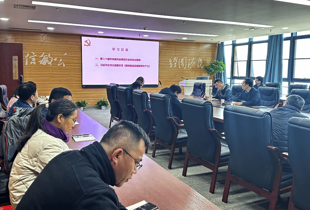 薛保山书记首先围绕党的二十届四中全会精神开展领学。他聚焦全会审议通过的《中共中央关于制定国民经济和社会发展第十五个五年规划的建议》,系统阐释了“十五五”时期作为基本实现社会主义现代化关键阶段的战略意义,深入解读了“坚持高质量发展”“加快高水平科技自立自强”等核心部署。同时,他结合习近平总书记重要文章《因地制宜发展新质生产力》的核心要义,强调发展新质生产力是推动高质量发展的内在要求,而“因地制宜”是避免同质化竞争、提升发展实效的重要原则,为学院立足学科特色贯彻落实全会精神奠定了理论基础。