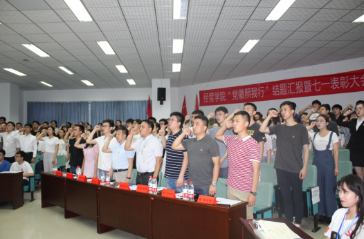 为热烈庆祝建党98周年和建国70周年,引导全院师生党员踏寻党的奋斗之路、回顾伟大祖国走过的风雨历程、共同展望伟大事业的美好前景。2019年6月20日晚19:00,在学校党委的统一领导和部署下,麻豆视频 七一表彰暨暑期学习之路主题社会实践动员大会成功举办。学院党委书记杨昌锐、学院党委副书记沈波、学工组全体教职工,经管学生会主席团代表、院团委学生代表,以及全体学生党员参加大会。