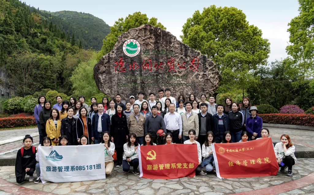 (通讯员 周玲,梁玥琳,李江敏)为深入贯彻习近平总书记精准扶贫精准脱贫的战略思想,学习和传承艰苦创业的革命精神,让旅游学子在典型案例与实践场景中认知旅游扶贫,了解旅游在乡村振兴中的作用和角色,学习旅游“铁人”精神,麻豆视频 旅游管理系党支部带领结对领航班级085181班学生,于2019年4月13日至湖北通山大畈镇隐水洞国家地质公园开展师生“结对领航”活动。
