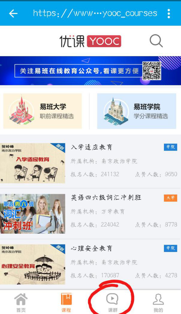 第一步:下载易班APP,进入易班系统,然后点击精品课程(见下图示意)