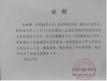 开展教育要用好身边同学抗击疫情的鲜活教材。党支部对于在抗击疫情中表现优秀的同志,支部在学院党委的指导下,依托班会、主题党日等对他们的先进事迹进行了通报表扬,并号召全体学生党员和入党积极分子向优秀看齐,充分发挥朋辈育人作用开展理想信念和爱国主义教育。