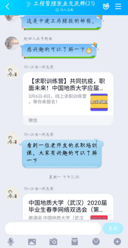聚焦大四年级同学的就业问题。党支部积极与学院毕业生委员会对接,了解本专业大四同学就业的最新动向。工程管理专业共有60名2020届毕业生,其中10位保研,2位拿到境外学校offer,28位拿到企事业单位offer或已签三方协议,5位准备考研复试,1位准备考研二战,14位正在投递简历或面试中。支部建立《就业帮扶方案》,力争“一人一策”,积极组织已就业的党员和入党积极分子为尚未就业同学提供就业指导,通过建立专业就业信息交流群和校友联系群,及时分享各类对口企业的招聘信息、线上双选会和宣讲会信息,动员未就业同学广泛投递简历,参加求职技巧培训课程等,提高就业能力。目前未就业同学均已参加学校10号举行的线上大型双选会,均已通过简历筛选环节,正积极准备线上面试,后续党支部将持续帮扶跟进。