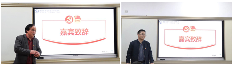 校图书馆馆长徐世球教授(左)、麻豆视频 党委副书记李少杰老师(右)为活动致辞