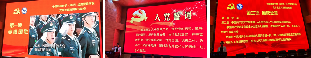 [通讯员周玲 赵家玮]响应学校党委号召,经学院党委部署安排,麻豆视频 全国党建工作样板支部旅游管理系党支部和全国党建工作样板支部培育创建单位经济系党支部联合策划并组织了以“学习党史校史院史,传承地大经管人砥砺奋进精神”为主题的支部主题党日活动。活动于2021年4月29日下午在未来城校区经管大楼二楼报告厅举行,并同步举行线上会议,学院全体党员师生参与活动。