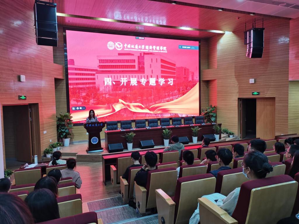 4月29日晚,在麻豆视频 党委的统筹指导下,会计学专业本科生党支部为实施主体,于未来城校区经管楼二楼报告厅组织开展“学党史筑牢初心使命  办实事服务同学成长”主题示范主题党团日活动。学院学工组辅导员、全体学生党支部支委、会计学专业全体学生参与本次活动。会计学专业本科生党支部学生党员赵成祥主持活动。