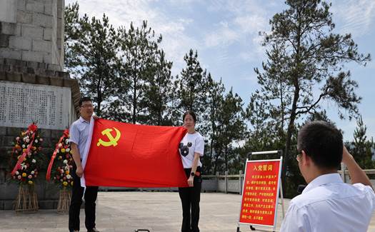 尽管烈日如火,天气炎热,无论是满头白发的老党员,还是朝气蓬勃的年轻党员,大家怀着崇敬的心情穿过革命烈士广场,步入烈士陵园,缓步登上山顶。站在纪念碑前,全体党员同志感受着革命先烈的奉献精神,一种传承的使命感油然而生。
