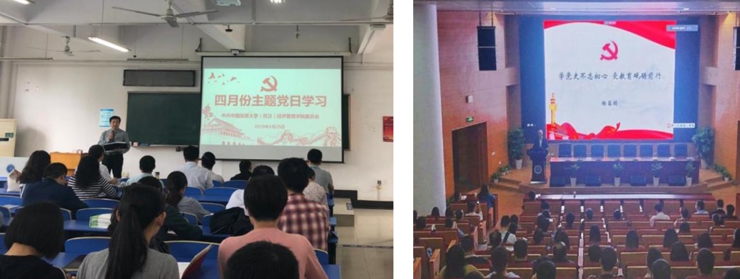 支部从校内校外两个层面开展支部共建,形成互帮互学的支部共建体,实现党建样板支部示范带动效应。在校内,支部与经济学系党支部结对共建,共同开展支部主题党日、“经品党建论坛”和党员教育活动,先后邀请校党委副书记成金华教授、华中农业大学理学院院长陈浩教授、校老年人协会会长杨昌明教授讲授党课,并就党建工作成功经验进行交流,辐射带动经济学系党支部建设成为第二批“全国党建工作样板支部”。
