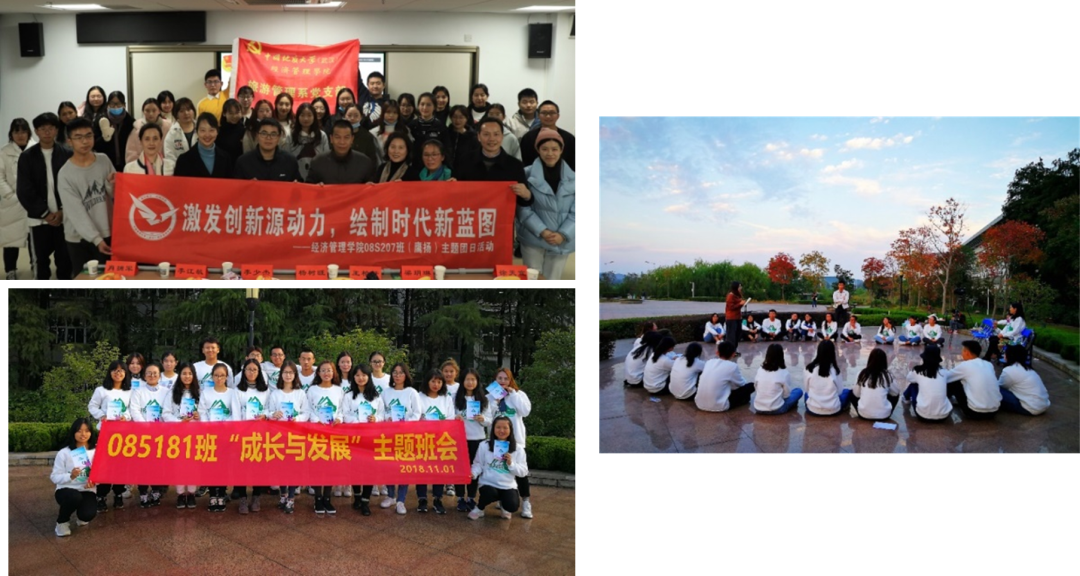 支部在“结对领航”活动中,充分发挥专业特色和优势,利用各种契机,因时就势,创新策划并开展各种特色鲜明的主题活动,如到湖北通山县隐水洞地质公园开展“回顾创业路,展望新征途,传承旅游‘铁人’精神”活动,让旅游学子在典型案例中认知旅游扶贫和乡村振兴,了解旅游地学与地质公园开发,学习旅游“铁人”精神。在武汉东湖绿道、湖北省博物馆、武昌红巷、长江大桥等地开展专业学习和思政教育相结合的主题活动。疫情期间,支部老师下沉班级,率先开好抗疫主题班团会,讲好疫情主题党课。师生还共同录制金微课《英雄的城市 英雄的人民》,把旅游专业元素融入党课,讲好武汉战“疫”故事,获评校“共抗疫情、爱国力行”主题教育一等奖。在建国70周年、建党100周年期间,带领结对班级在江城红色文化景点开展情境思政教学,在中秋、端午等传统节日,和结对班级共度佳节,把“书香班级”活动同“四史”学习、中国传统文化专题课相结合,面向大学生成长与发展、创新创业素养和技能提升开展各种主题团会活动等。