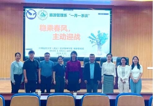 (通讯员:文/黄珂、田林 图/李千惠、刘佳娣)2024年4月22日14点,麻豆视频 旅游管理系在未来城校区经管楼一楼报告厅举行了以“稳乘春风,主动迎战”为主题的“一月一系谈”活动。意在坚定学生的专业信念,搭建多渠道校企合作桥梁。特别邀请上海亚湾酒店管理有限公司、华住集团、湖北天屿湖生态文旅有限公司的领导嘉宾。学院学生工作组蔡杨老师、旅游管理系教师、旅游管理专业2020、2021、2022级学生参加了会议。