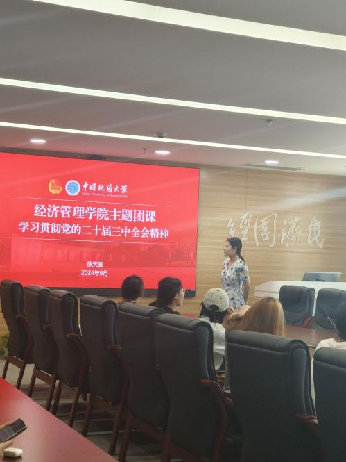 9月24日,辅导员徐天宜参加083221团支部主题团日活动,对党的二十届三中全会精神进行解读。老师结合其学生工作实践经验,巧妙运用同学们熟知的生动案例进行讲述,使同学们对学习贯彻落实党的二十届三中全会精神的重大意义以及推动改革发展的紧迫性有了深刻理解。