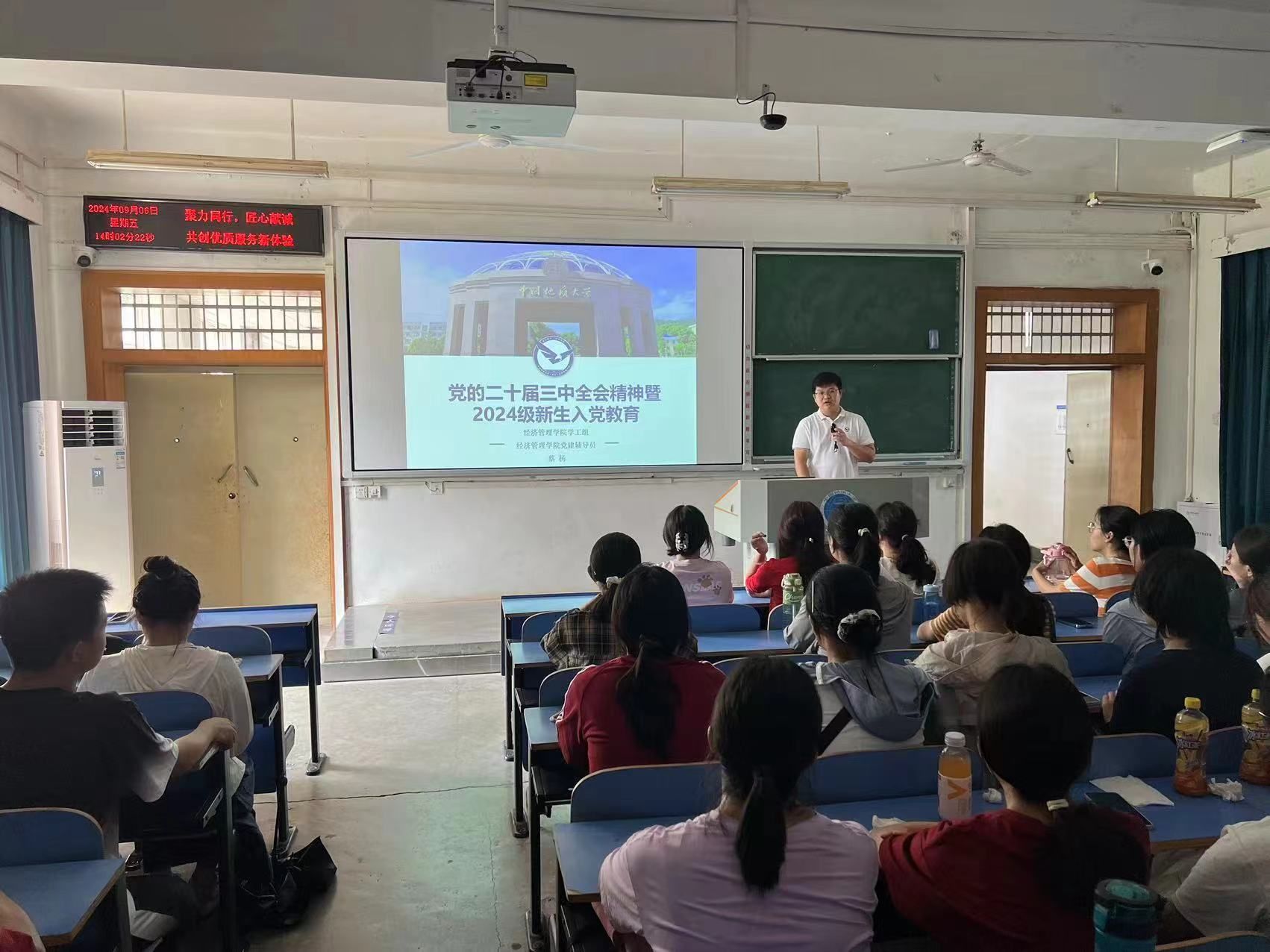 9月6日,作为新生入学教育的一个环节,学院辅导员蔡杨面向2024级本科生全体团支部,开展了“学习贯彻党的二十届三中全会精神”宣讲活动。蔡杨老师以生动活泼的语言风格,拉近了与同学们的距离,传达了全会精神。他特别强调,作为合格的大学生,同学们应明确自身的责任与使命,在党的领导下以社会主义核心价值观团结一致、奋发向前。