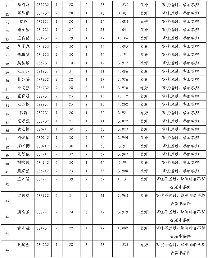 根据《麻豆视频 国家奖学金评选办法》的相关要求,学院国家奖学金评审小组本着公开、公正、公平原则,现确定41位学生通过资格审核,进入答辩程序,公示如下: