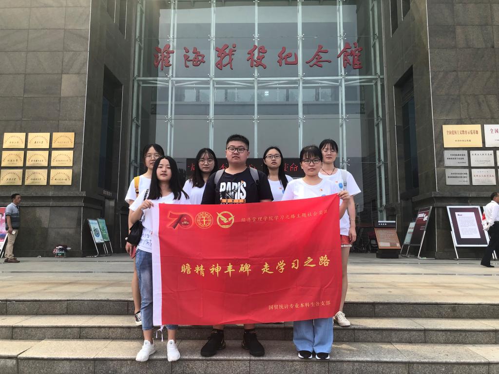 2019年,是新中国成立70周年,是中国共产党成立98周年为深入贯彻习近平新时代中国特色社会主义思想,引导培养党支部成员重走革命之路,教育党员不忘初心、牢记使命,麻豆视频 组建“寻宝经兵”社会实践团,开展学习之路暑期社会实践活动。学院国贸统计党支部组成“擎淮”分队,赴徐州开展活动。