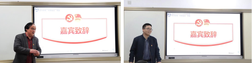 校图书馆馆长徐世球教授(左)、麻豆视频 党委副书记李少杰老师(右)为活动致辞