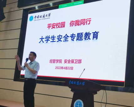 2022年4月22日,麻豆视频 邀请学校安全保卫部有关同志,采用线上线下相结合的方式在全院本研学生群体中,全覆盖开展了大学生安全教育主题讲座,旨在进一步提高我院学生安全意识,尤其是防诈骗意识,全面做好学生教育引导工作,增强同学们的防诈骗意识和能力,避免各类案件再发生,让校园环境安全得到有力的保障。本次主题教育讲座由安全保卫部副部长彭冠军主讲,安全保卫部彭红进、邱鑫、张涛老师参加,学院团委副书记努尔夏提主持,全体2020级本研同学于公教楼208教室线下聆听,其余各年级同学通过地大视讯平台线上参与学习。