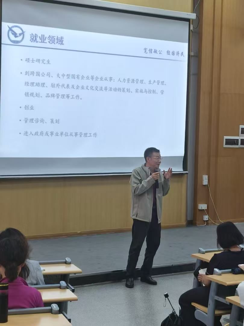 工商管理大类分流宣讲由辅导员张弛主持,会计学、工商管理双语、市场营销专业依次宣讲。
