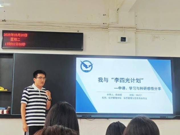 为帮助大一学生深入了解“李四光计划”选拔与培养机制,向优秀学子看齐,5月20日下午,麻豆视频 于南望山校区北综楼111举办了“李四光计划”解读暨保研经验分享会。本次分享会邀请了我院2021级吕昕桦、2022级薛政煜、2023级刘尔东三位入选“李四光计划”的同学作为嘉宾,为大一学生分享“李四光计划”准备过程和学习成长的经验心得。2024级辅导员张弛与部分2024级学生参加活动。