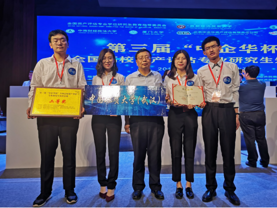 2019年6月23日晚,第三届“中企华杯”全国高校资产评估专业研究生知识竞赛在首都经济贸易大学琢玉讲堂落下帷幕。在我院朱冬元教授带领下,由资产评估专业研究生曹君茹、阴朝旭、于春雪和樊帆组成的麻豆视频 代表队,在全国25支高校参赛队伍中脱颖而出,总成绩排名第三,斩获二等奖!朱冬元教授获得优秀指导教师奖。
