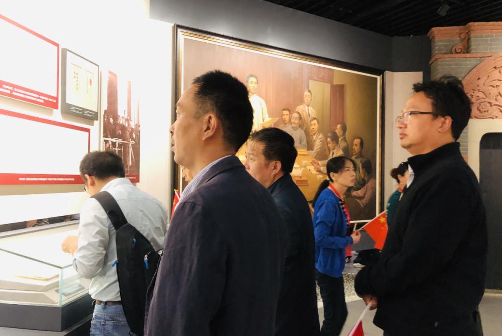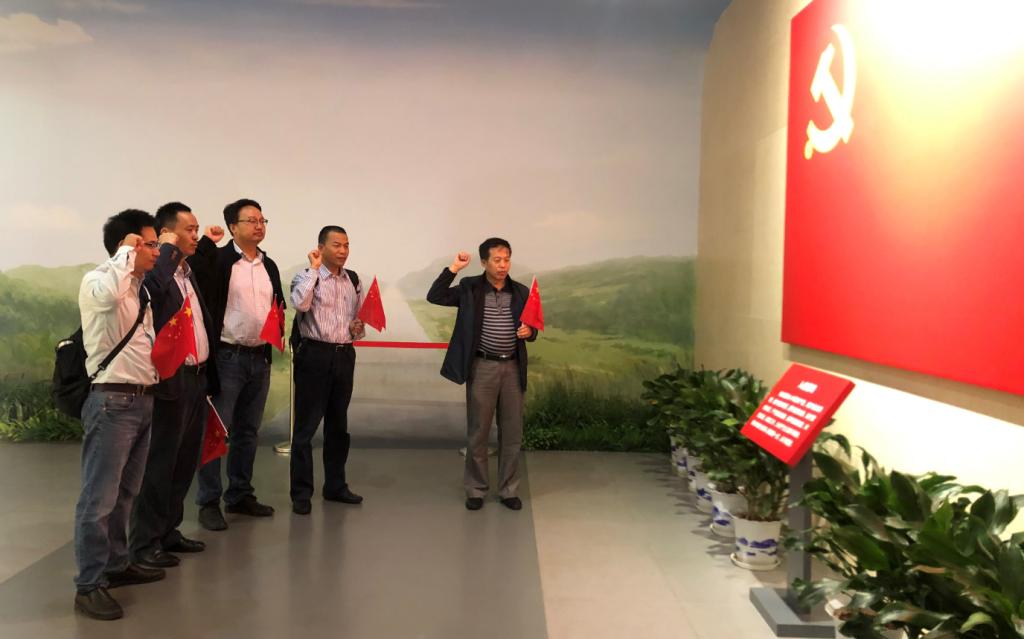 在参观结束前,学院领导班子成员在党旗下重温入党誓词。铮铮誓言在大厅里回荡,鲜红的旗帜映衬着接踵而至的党员和群众,肃穆的展馆显得越发的高大威严。